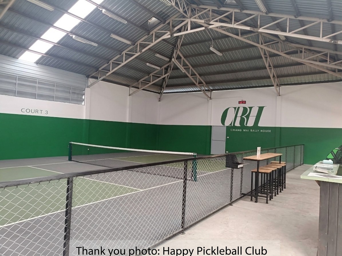 Chiang Mai's premier indoor pickleball sanctuary with 7 courts on professional cushion surfaces — ideal for joint protection and competitive play. Open daily 8 AM – 11 PM. Newly opened in 2025 with coaching available.
